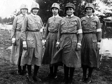 Viisi lottaa, vasemmalta Laila Korva, Eeva Lantto, Sirkka Valvio, Eevi Hietanen, Taina Hietanen 16.6.1932
