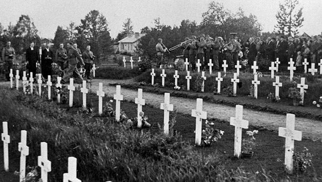 Sankarihautojen siunaus Sodankylän kirkkomaalla.