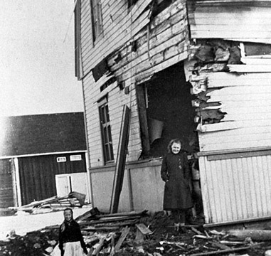 Pommin tuhoama Tikkasen talon nurkka aprillipäivänä 1940.
