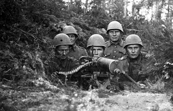 Rintamalta, konekiväärin takana syöttäjänä Aleksi Seitaniemi.